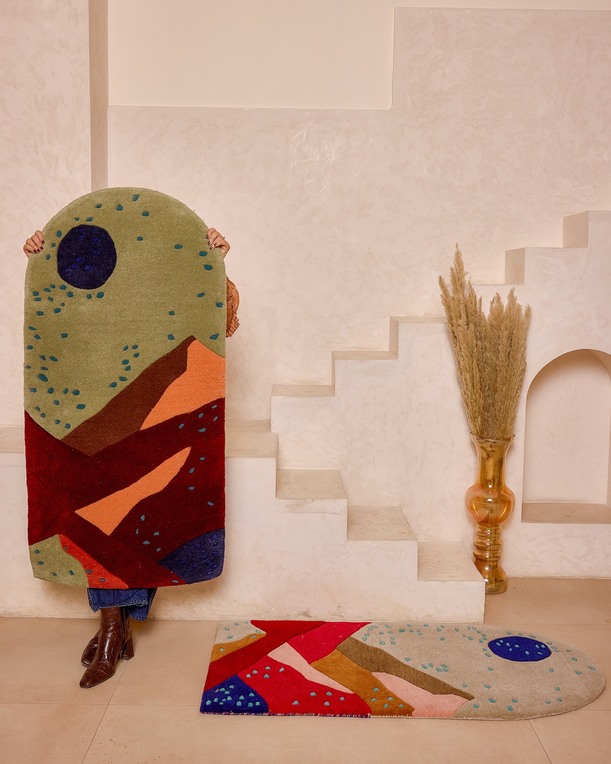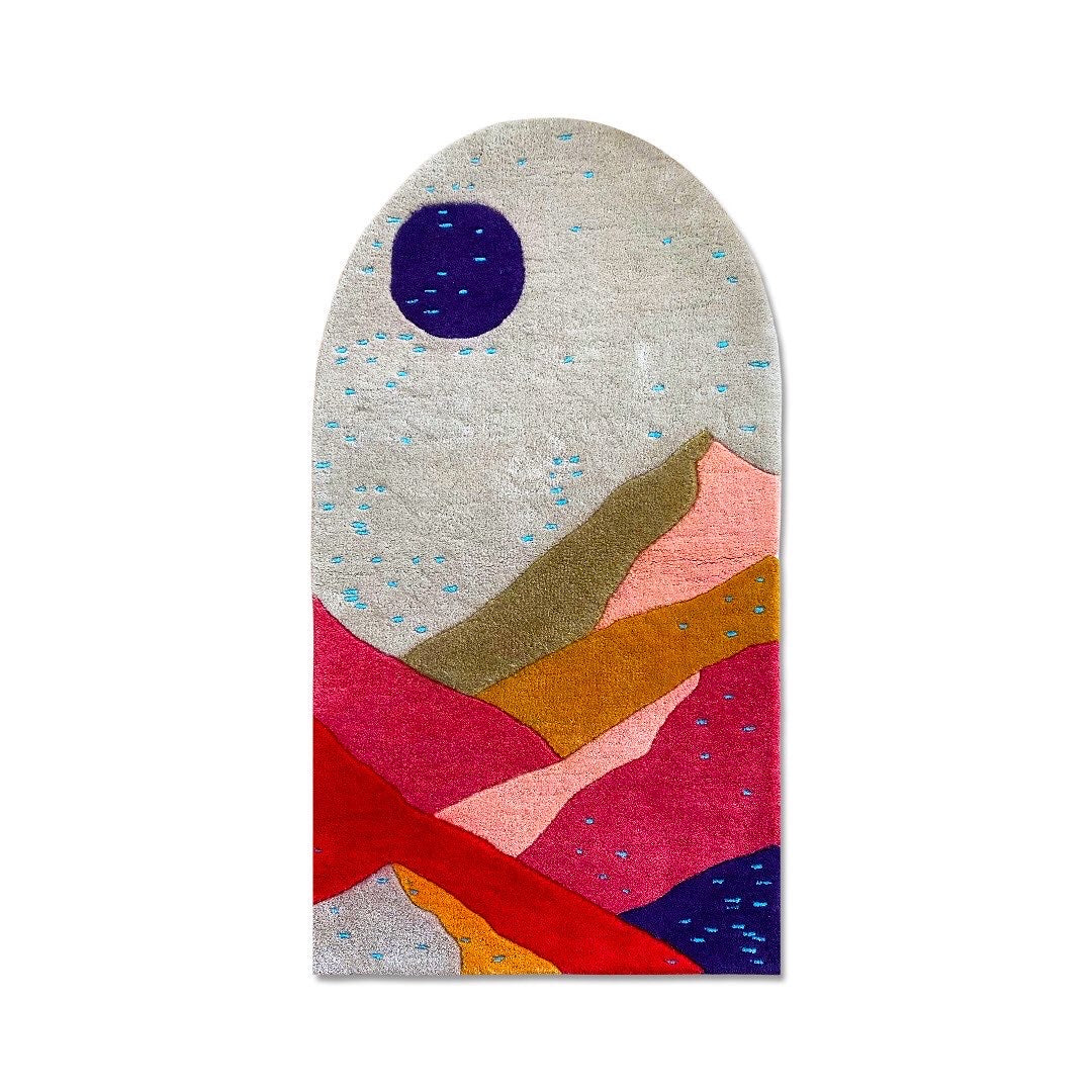 The Montana rug features a stunning landscape design, showcasing layered colors that represent rolling hills and majestic mountains. With warm hues of sun-kissed gold and earthy tones, this rug brings the beauty of nature indoors, creating a serene and inviting atmosphere in any space. Perfect for adding a touch of tranquility to your home decor.