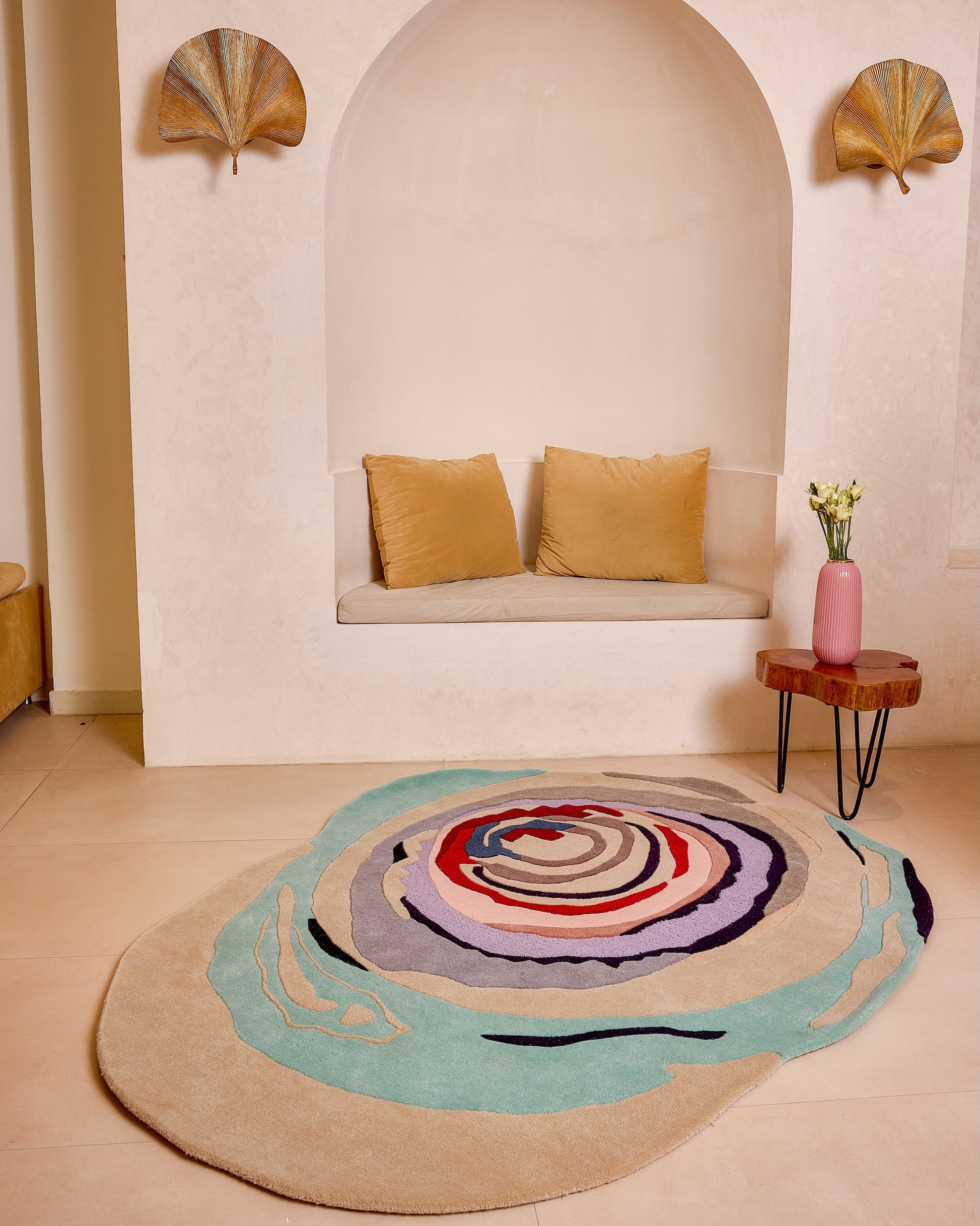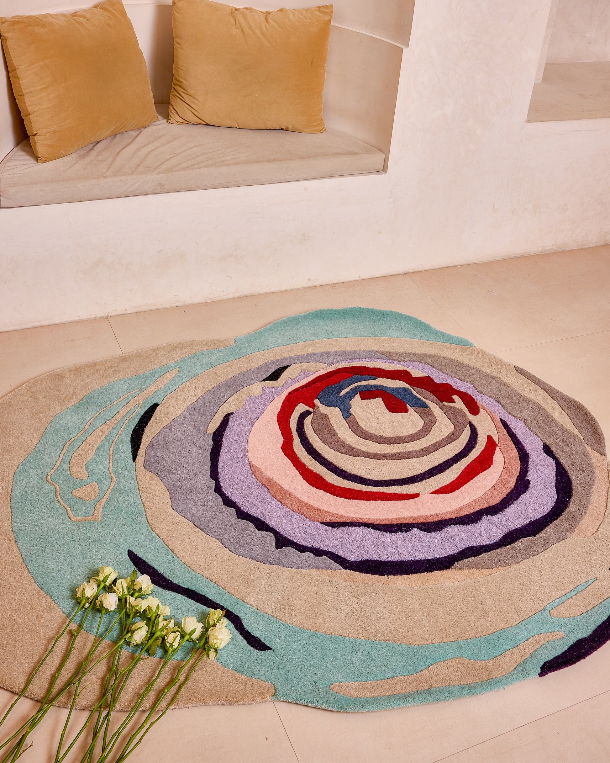 The Petalwave rug is a striking tribute to the bold elegance of Art Deco. With strong, eye-catching shapes reminiscent of stone patterns in various sizes, this rug combines intricate geometry with vibrant color contrasts, creating a statement piece. Its design reflects the glamour and rhythmic energy of the 1920s, bringing an air of sophistication and vintage charm to any room. This rug is perfect for those who appreciate both artistry and style in their space.