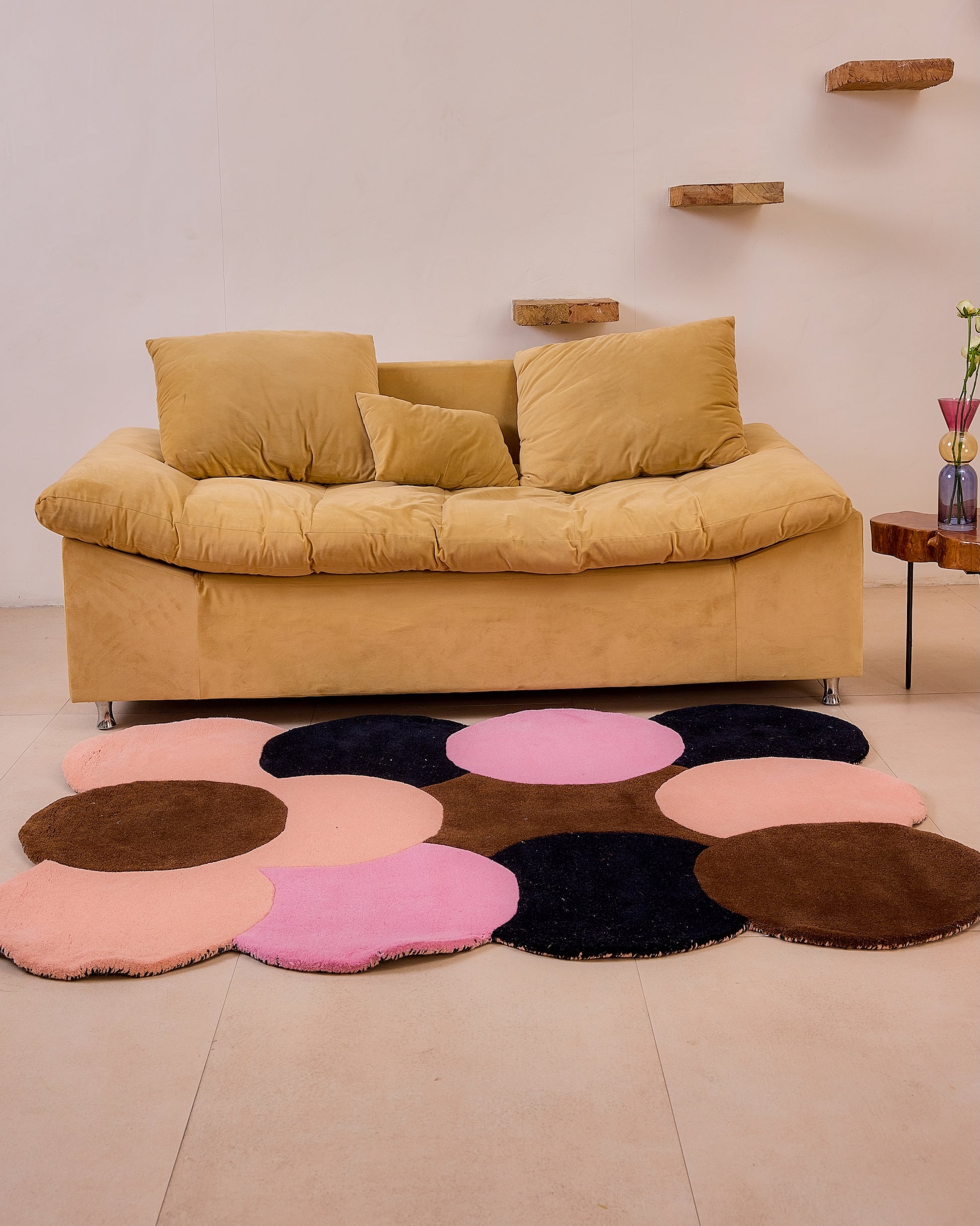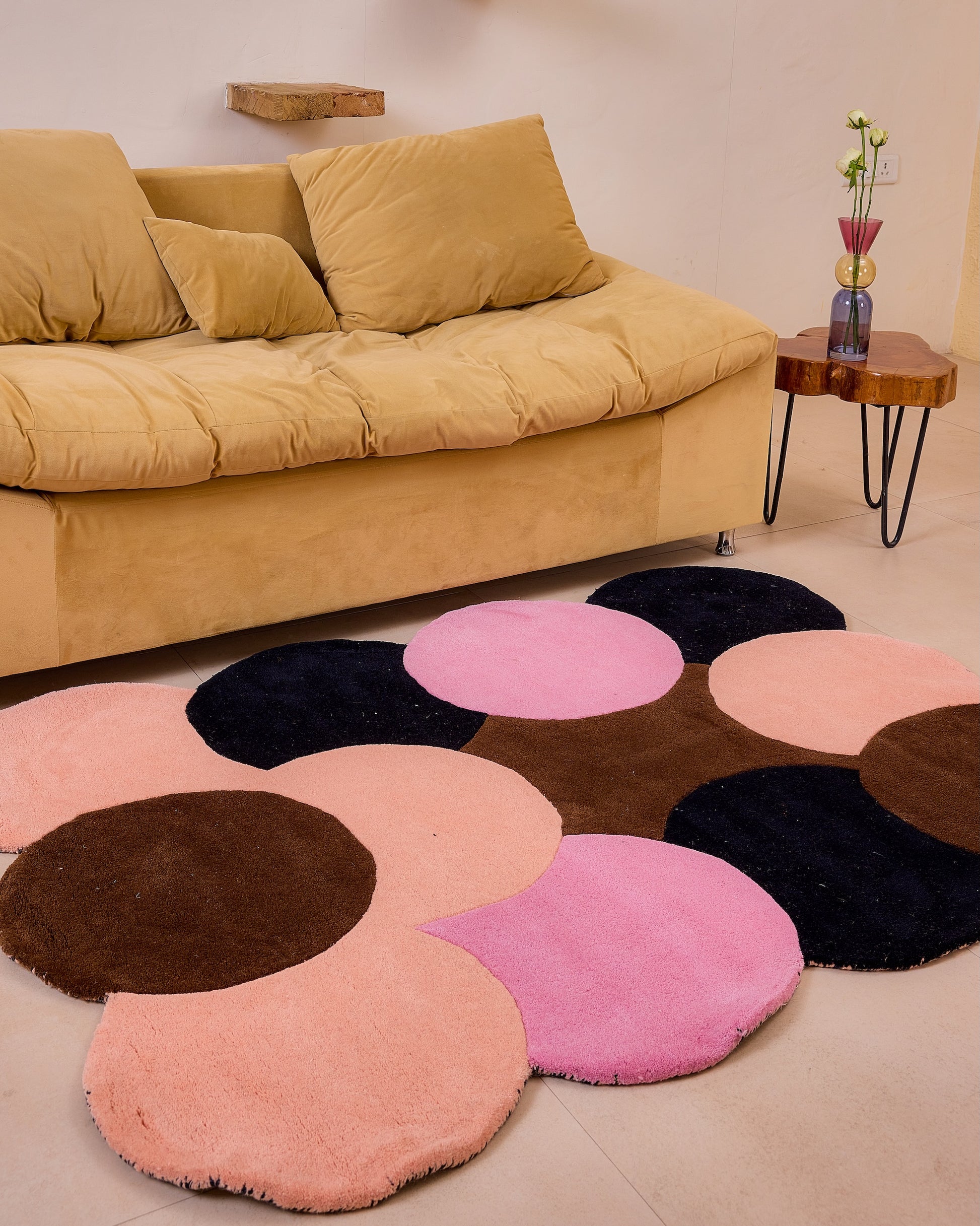The "Truffle Pop" rug is a bold and vibrant fusion of pink, brown, and black bubbles, designed to make a statement. The rich tones of brown and black offer a grounding warmth, while playful pops of pink bring energy and fun to the design. Inspired by the indulgence of truffles and the excitement of color, this rug adds a dynamic touch to any room. Perfect for those who love a mix of sophistication and personality, the Truffle Pop rug effortlessly elevates your space with its unique charm and modern edge.
